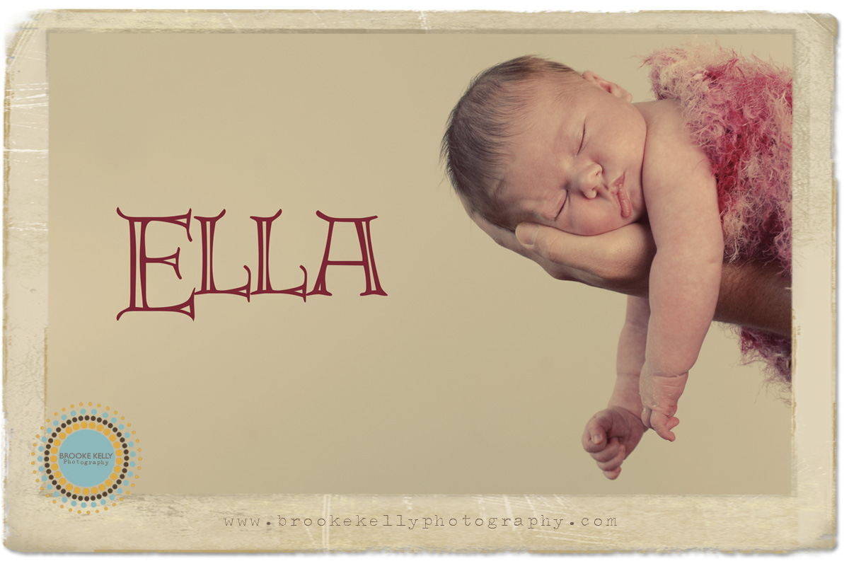 Miss Ella had quite the arrival into this world. Mom and Dad had planned to have a natural delivery, but after 14 hours of labor they were stuck and opted for an epidural. As it turns out, Miss Ella was a too big and was born via c-section. She has to wear a brace for a while because she also has hip dysplasia. I thought this was going to pose a challenge since I couldn't bend her into certain newborn positions, but Ella was a superstar and we just hid her brace with some of my fabrics. How cute is she?!?